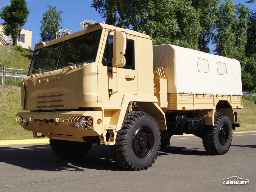 During a parade of vehicles dedicated to the Independence Day of the Republic of Belarus and held in Minsk on July 3, 2013, MZKT factory demonstrated a new model. We are talking about a special all wheel drive MZKT-5002 4x4 (later designated as 500200). Despite the apparent similarities with the MZKT-6001 and a similar spring suspension and a number of other technical solutions, the new product has a lower capacity and dimensions. As a result, MZKT-5002 has a better geometric road capabilities and maneuverability. In addition, a new truck has a "cab-over-engine" layoute. The car was ordered by the Border Troops of Belarus and is analogous to MAZ 5316 and KAMAZ-4350.