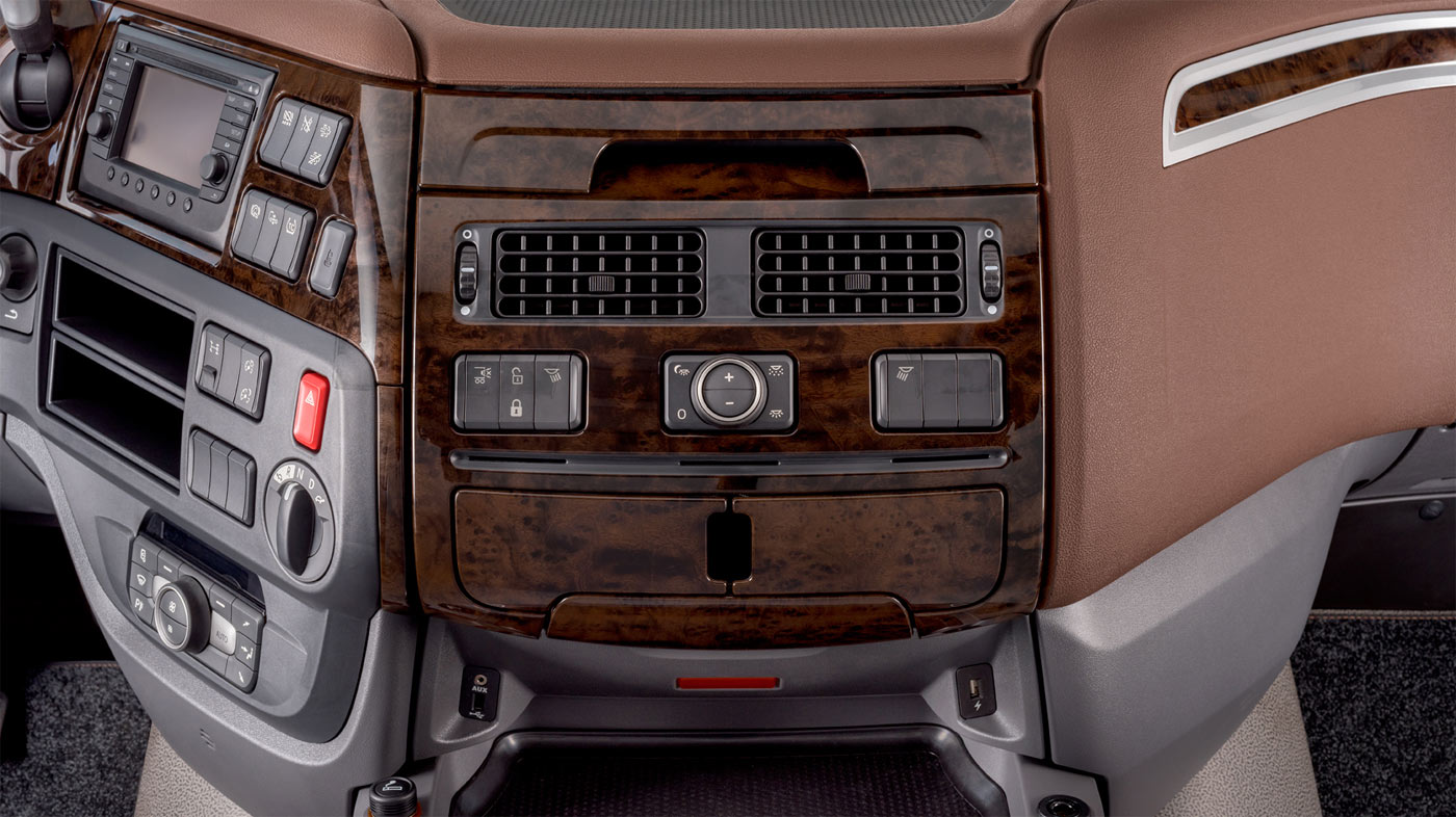 Rear axle designs have been further developed and reductions of down to 2.05:1 can be specified for driving at cruising speeds of 85 km/h at only 1,000 – 1,040 rpm, depending on driveline choice. The latest generation of TraXon automated gearboxes are standard on the new XF series with the 12 speed being standard and a 16 speed optional. The new XF feature a completely new electric and electronic architecture. It introduces a new vehicle control unit for dedicated driveline integration, featuring enhanced EcoRoll and Cruise Control functionalities, such as Dynamic Cruise.In order to achieve lowest possible fuel consumption, vehicle aerodynamics have been improved thanks to a new sun visor design for the XF. In addition, the new XF features wheel bay extensions and flow guides behind the grille for optimal aerodynamics around the truck and through to the engine bay. New grille closures reduce drag, and new gap closures between the headlight and corner deflector realize the best possible aerodynamics.