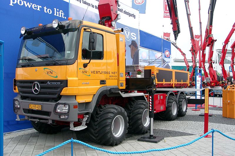 The world premiere of the second generation Actros was in 2002 at the motor show in Hanover. The new range includes model from Actros 1832 to Actros 4158 and replaces the first generation Actros which was presented in 1996. The first sells began in March 2003. In October at the RAI International Commercial Vehicle Show in Amsterdam, the truck received the award "Truck of the Year 2004". The new Actros MP2 is equipped with upgraded engines, new axles and suspensions, has an improved aerodynamics and new electronic systems. The cabin received a completely new interior and become more spacious inside. Exterior changes are not so radical. There is a new grille, head lights, side deflectors and a bumper. Fog lights are moved from the bottom of the bumper closer to the headlamps, where they are better protected from damage. Xenon headlights are available as an option. Such lights are more efficient and consume less energy: 35W instead of 70W halogen lamps. Besides, xenon lamps have almost an unlimited life, as they don't have spiral. Totally the Actros MP2 range includes more than 530 versions tractors, flatbed trucks and dump trucks, which could be equipped with 6 different cabins and 12 types of wheel bases. Compared with the first-generation, a nominal engine power of Actros MP2 increases about 5-20 kW (7-27 hp) and maximum torque about 8%, or 150 Nm. Due to the increasing of power, there are some changes in designation of modifications, except 1846 model. The trucks with a 12-liter V6 engine received the following codes (for example, for 18-ton version): 1832, 1836, 1841, 1844 and 1846. The models with a 16-liter V8 engine received the indices 1850, 1854 and 1858. The new Mercedes-Benz Actros MP2 is equipped with a 16-speed gearbox with straight main gear (G 211/G 231) or overdrive main gear (G 210/G 240/G 260). As the previous generation, these transmissions are controlled with the Telligent system. Engines are more powerful and fuel efficient versions of V-shaped 500 series engine. There are 5 versions of the engine OM 501 LA V6 with an output from 235 kW/320 hp to 335 kW/456 hp. The V8 engine could be offered in three versions with an output from 335 kW/503 hp tp 425 kW/578 hp. The new Actros MP2 has a number of different cabins: daycab, medium and long (these cabs can be made with a different height roof). In addition, the car hauler road train Mercedes-Benz Actros can be equipped with the 90 mm lower cabin. The new rear axle HL 6 with two air springs (so-called light-weight, double balloon "construction) offers improved load capacity of tractors with up to 335 kW (456 hp) engines.