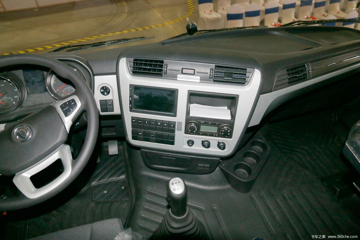 Несмотря на то, что основа кабины осталась прежней (а она, напомним, досталась модели от японских грузовиков UD), выглядит она совершенно иначе благодаря измененному стайлингу. Передняя панель получила несколько иной дизайн, а также 3-спицевое рулевое колесо. Для отделки были выбраны черно-серебристые цвета, создающие ощущение простора внутри. Центральная консоль напоминает IVECO Stralis Hi-Way и оснащена 7-дюймовым дисплеем мультимедийной системы. Но главное отличие Tianlong KL от предшественника в том, что теперь пол в кабине практически полностью ровный.